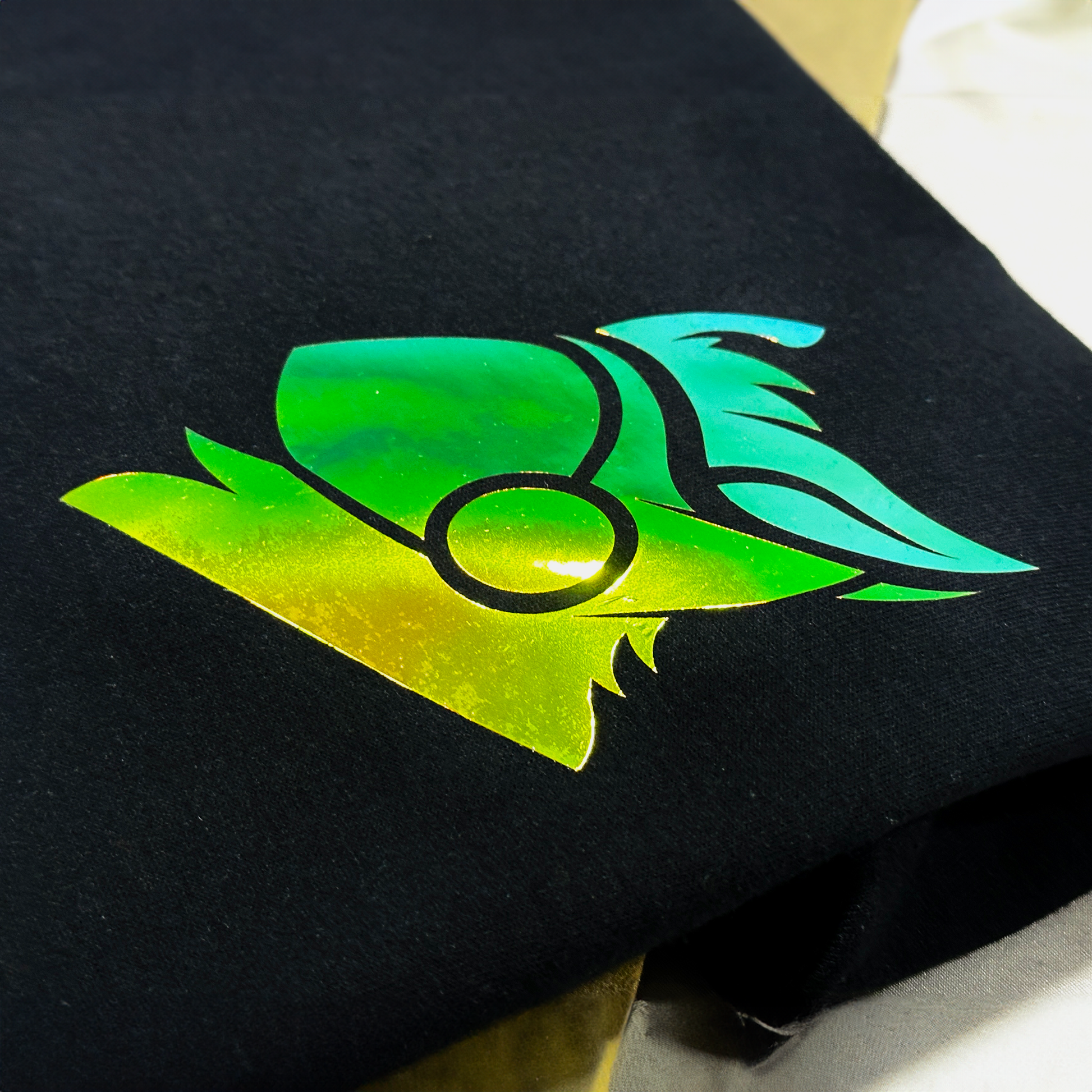 holo. features a sleek holographic emblem near your heart; a subtle way to identify those affiliated with the same niche as you.
